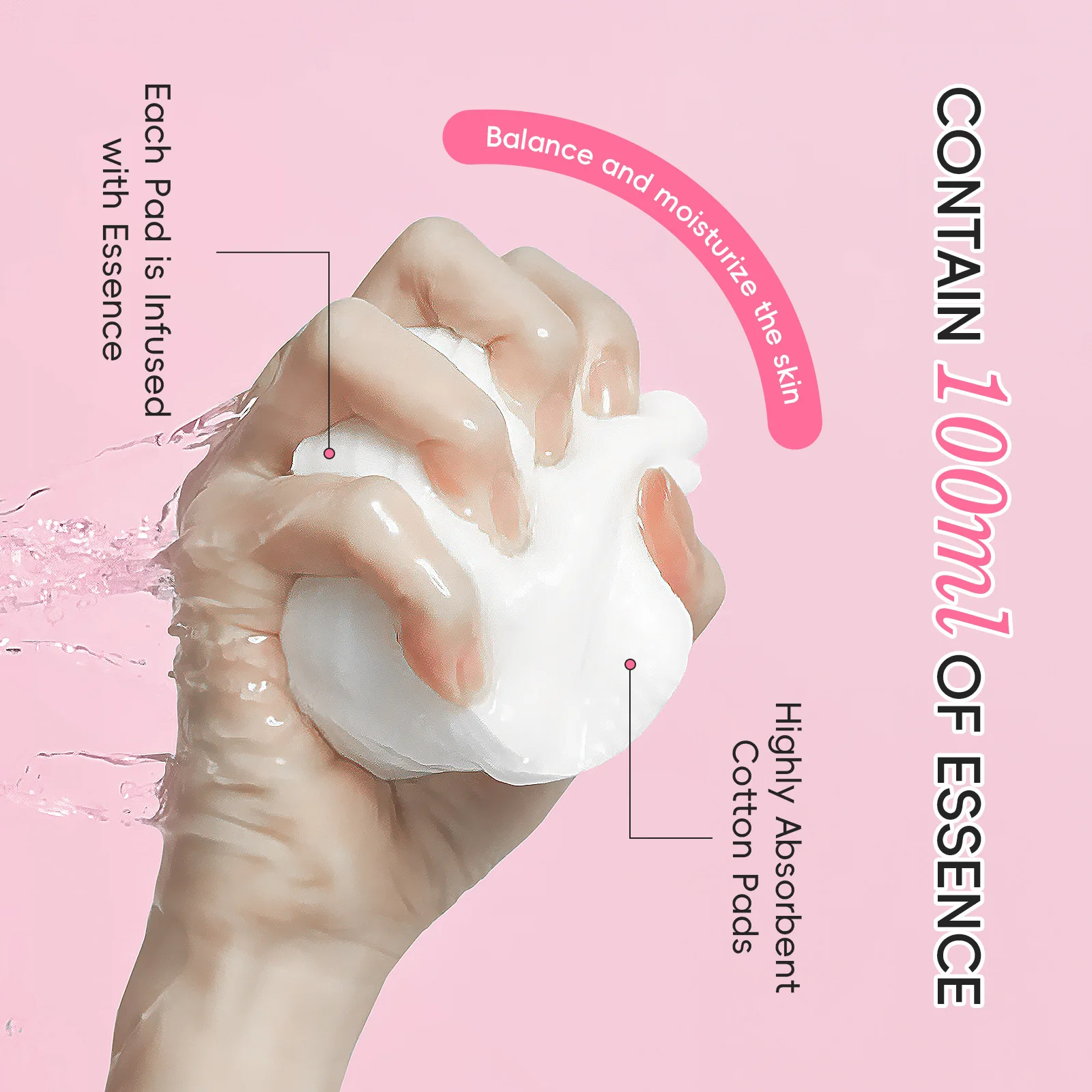 4.highly absorbent cotton pads:cotton pad texture ultra soft and lightweight,each pad is infused with essence,contain 100ml of essence