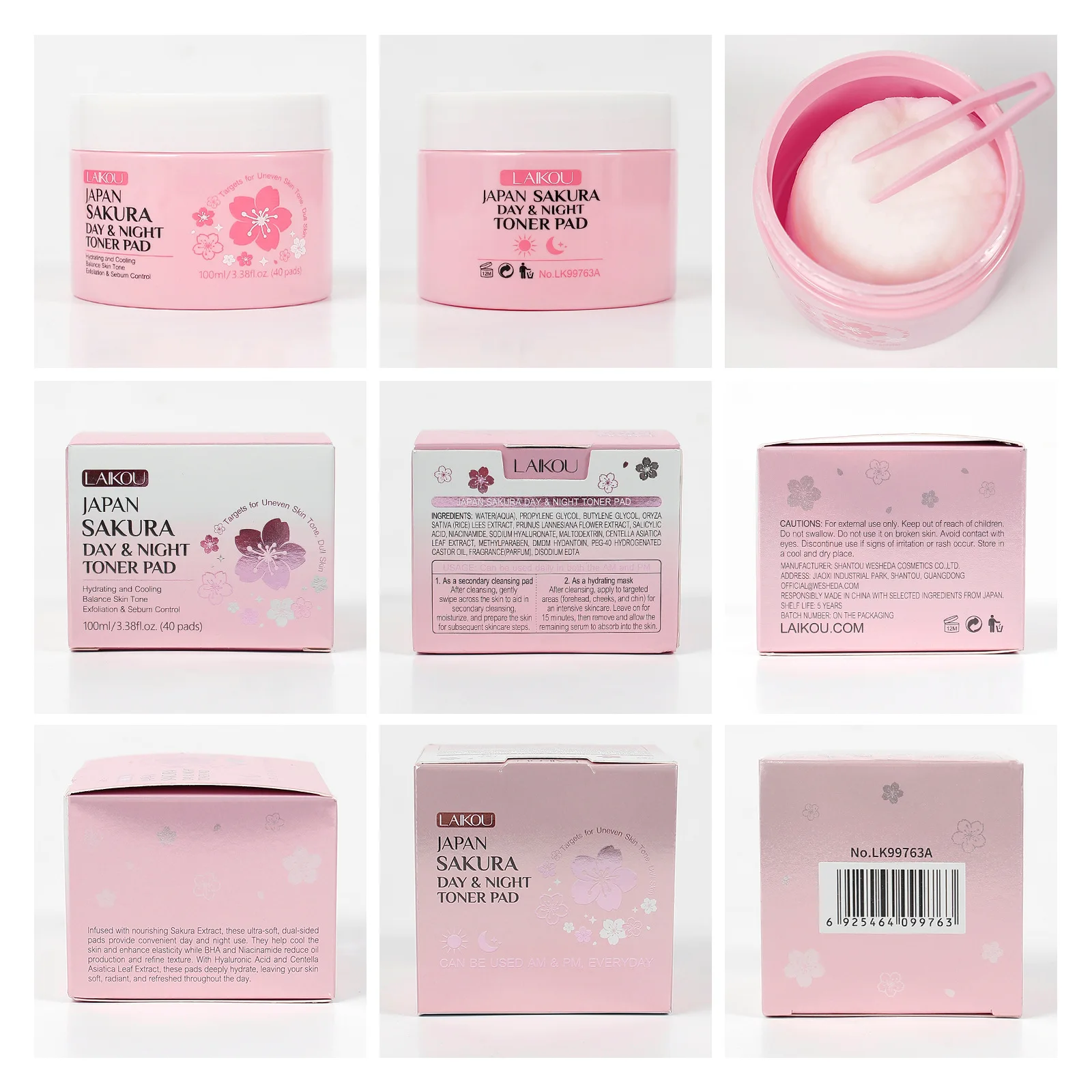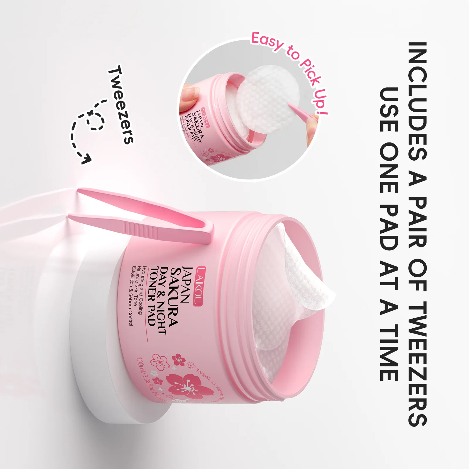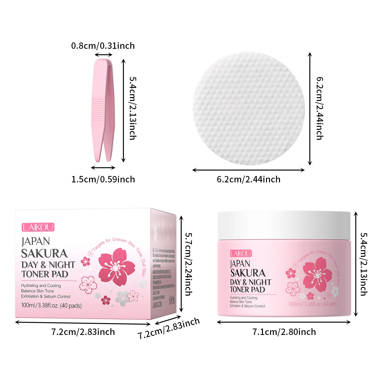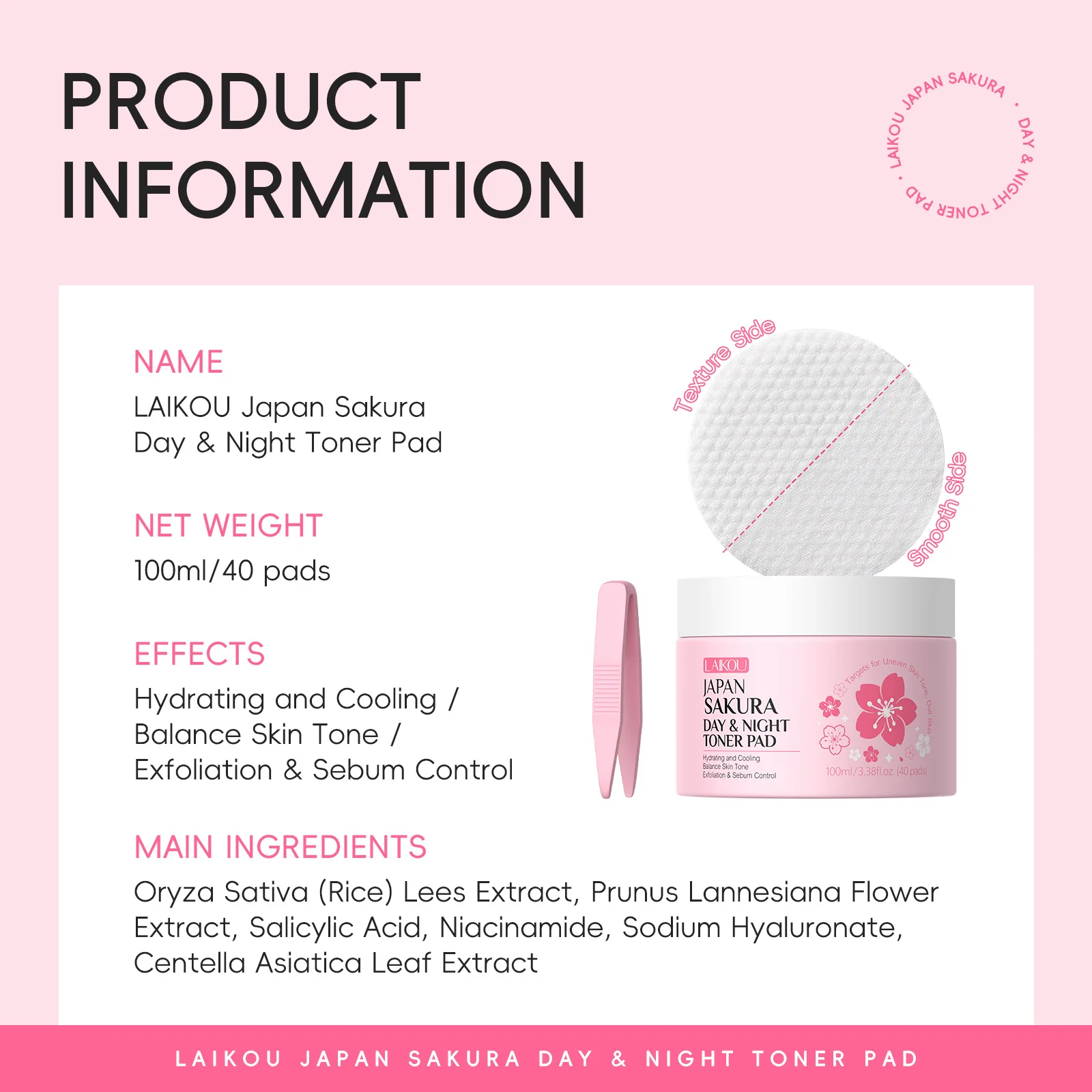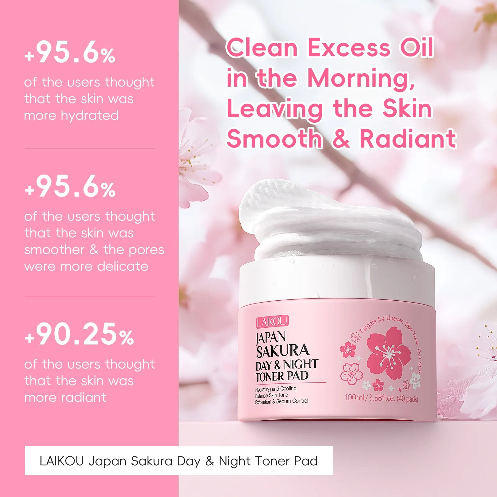 Laikou Japan Sakura Day & Night Toner Pad 100ml/40pdas Cleansing Remove Makeup Moisturize Cleansing Pads