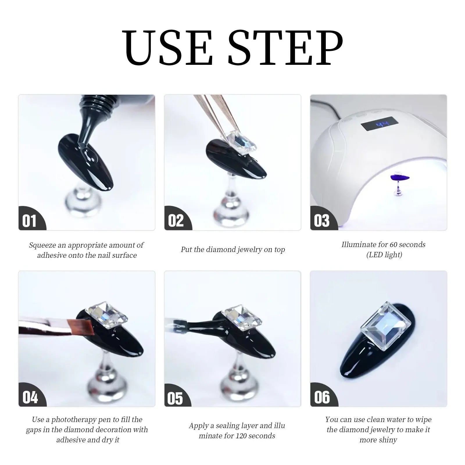 Nail Rhinestone Glue Gel for Decoration Nails 30ml Super Strong Adhesive Gel DIY 3D Nail Crystals Gem Jewels Glitter