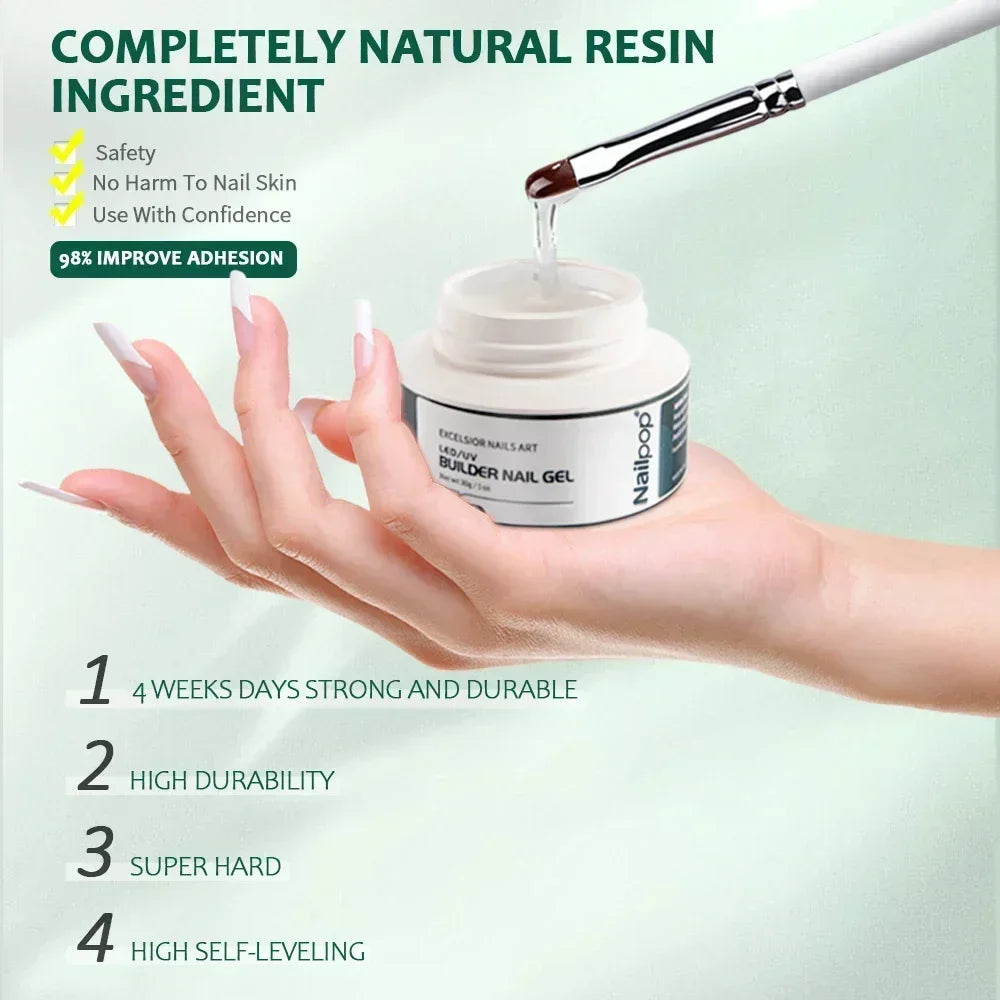 NAILPOP LED/UV Builder Nail Gel 3 Colors Nail Extension Gel Kit Nude Pink Clear Hard Gel Builder Nail Strengthener Manicure Set
