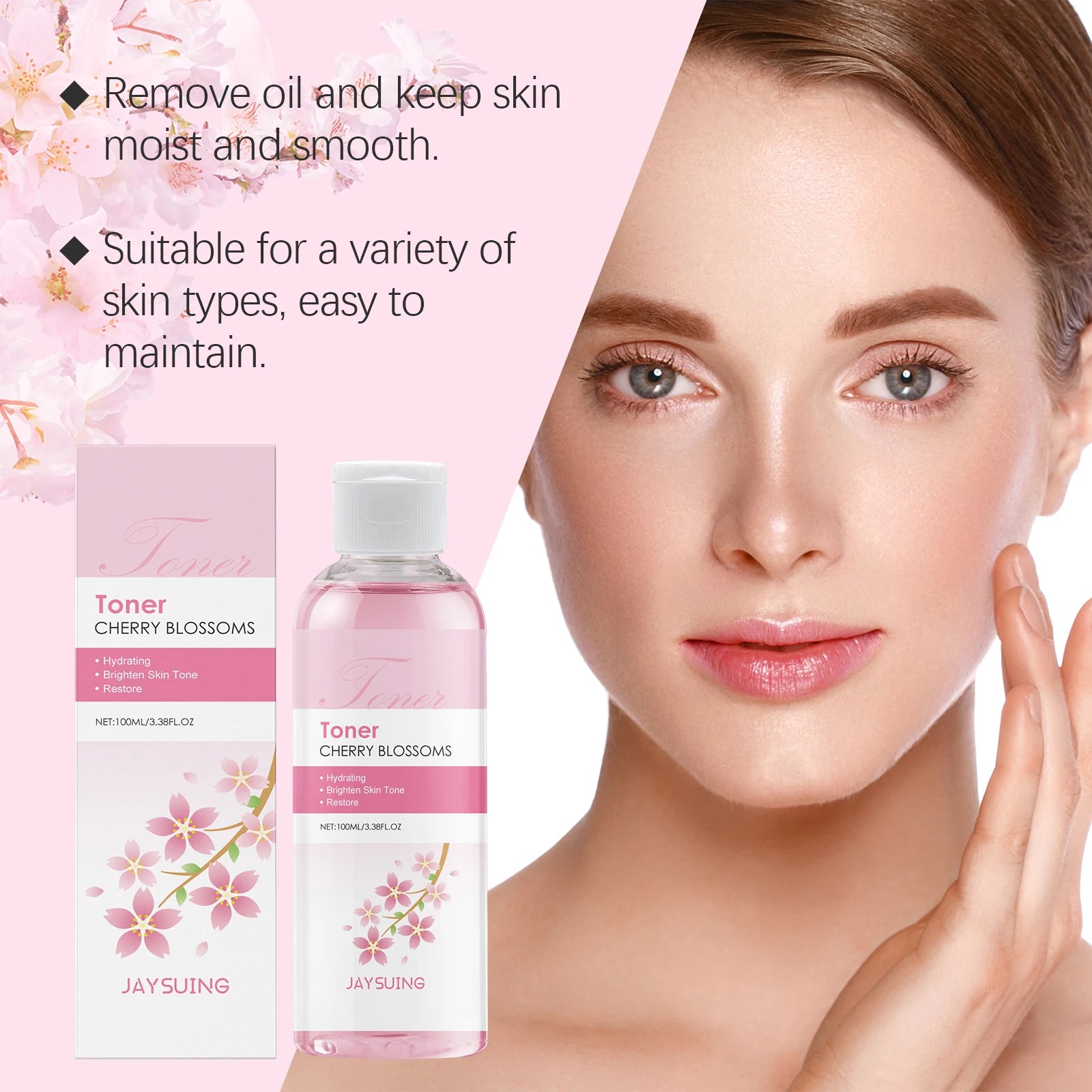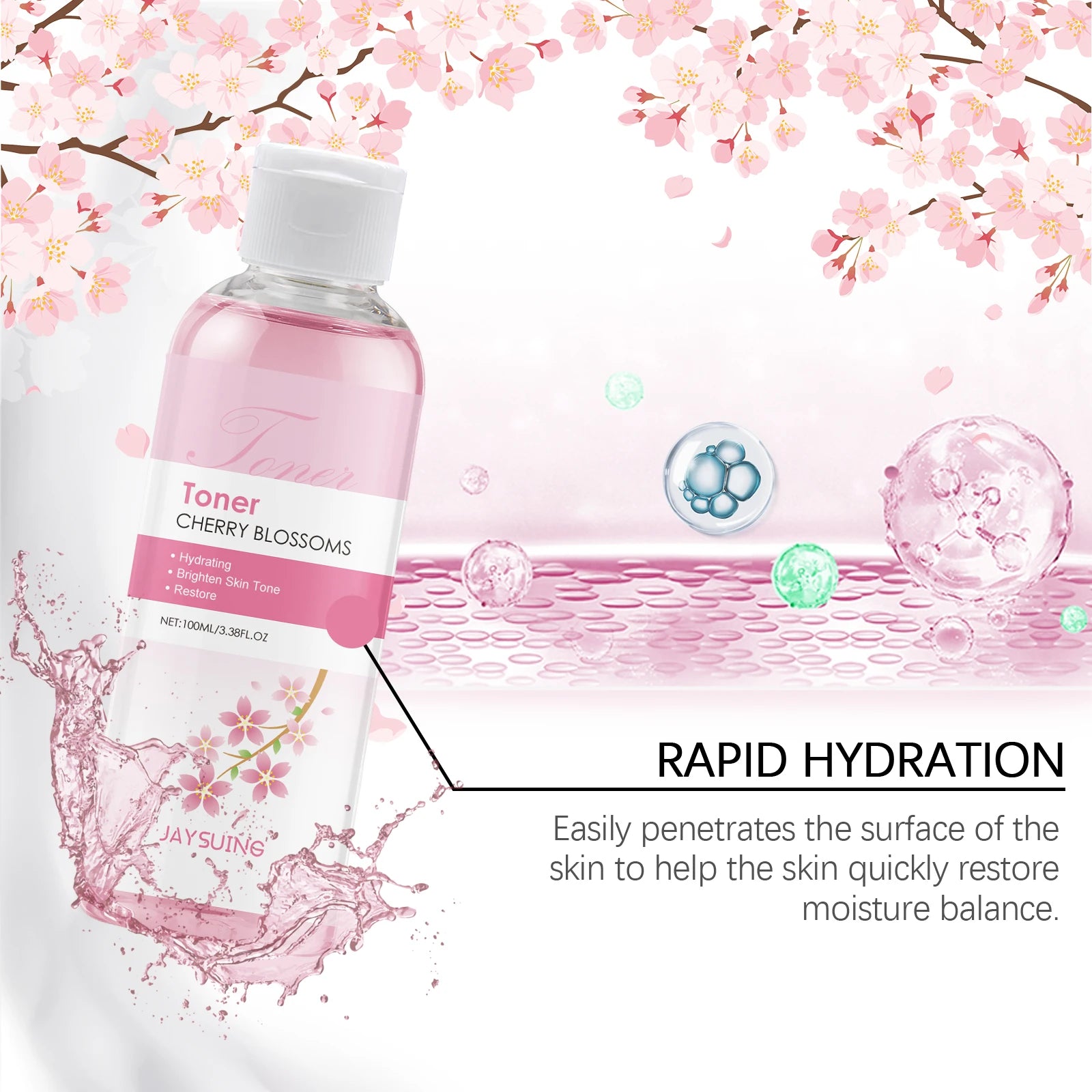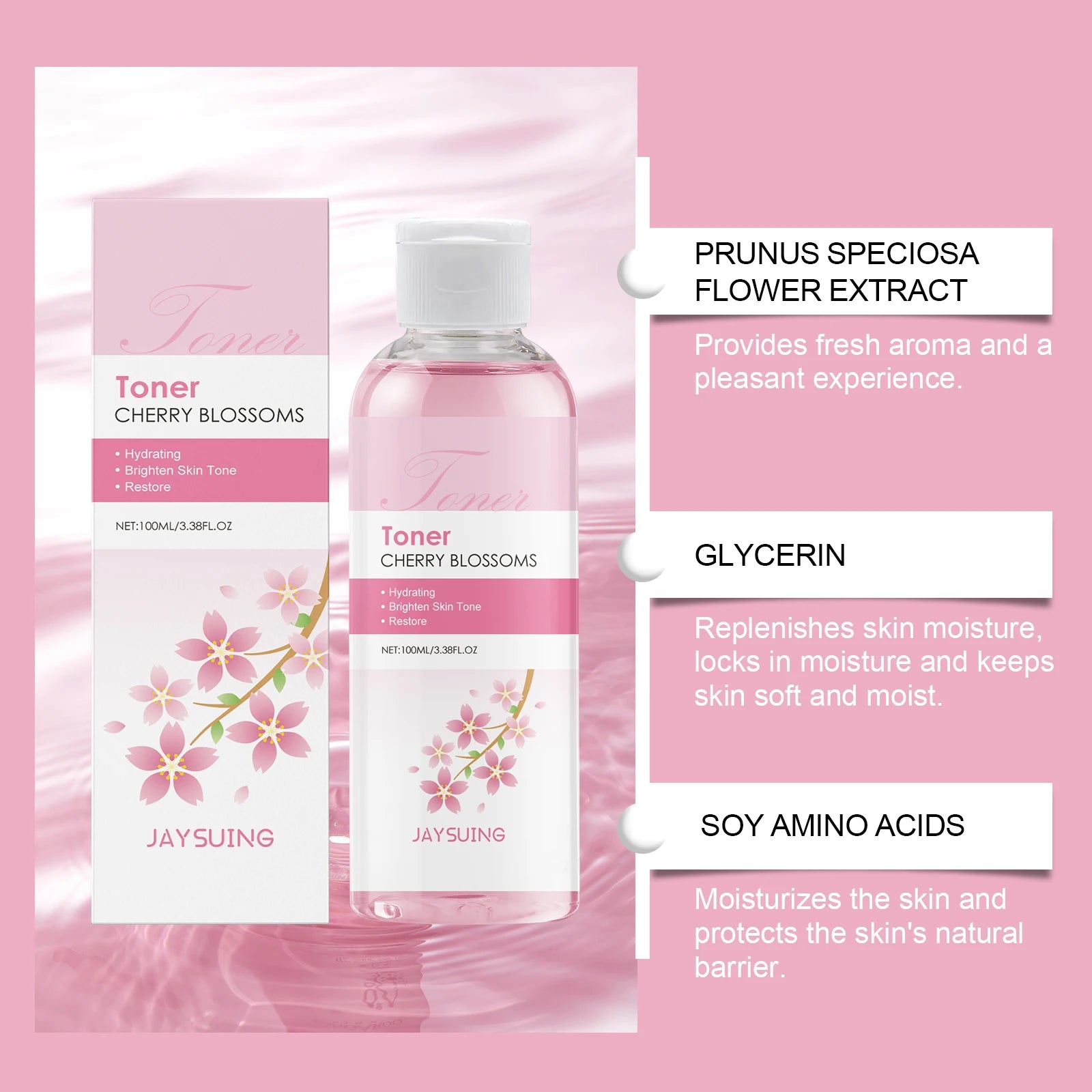 JAYSUING Sakura Face Toner Deep Hydrating Moisturizing Oil Control Improve Dryness Rejuvenating Firming Brightening Cherry Blossoms Serum 100ml