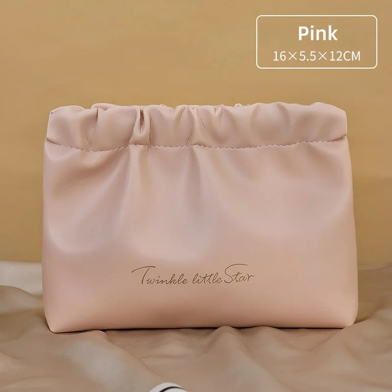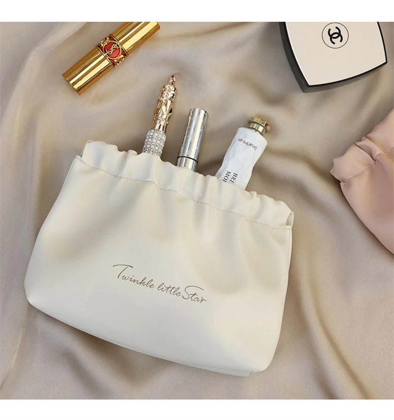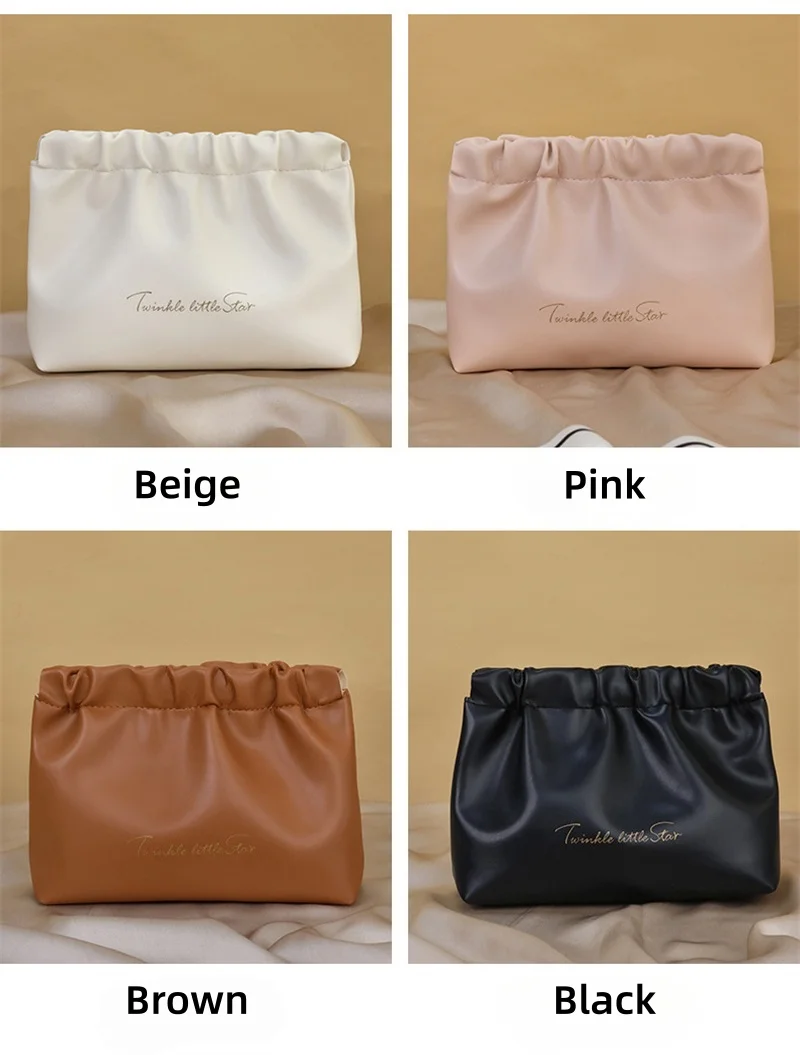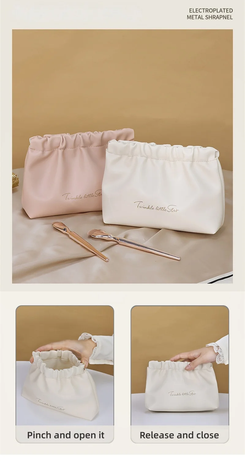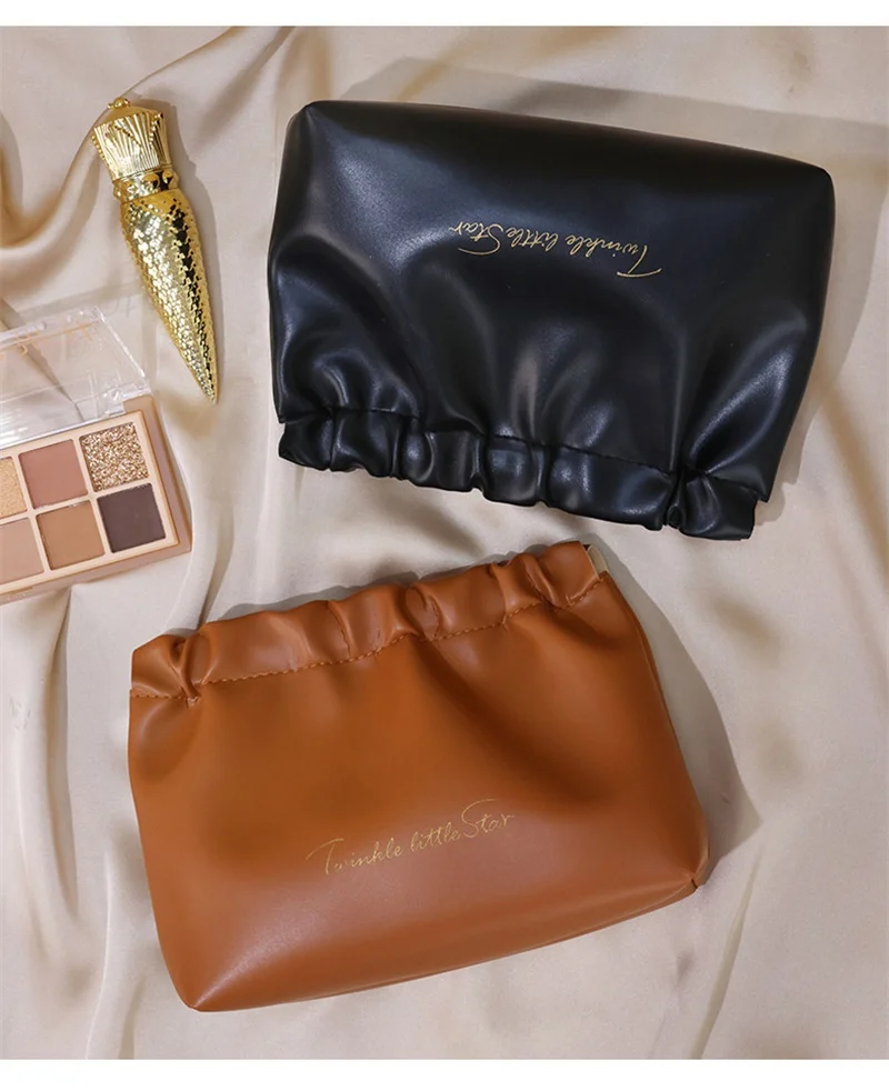 Wrinkled Makeup Bag With High Value Portable Waterproof Wouth Red Envelope Travel PU Wash Storage Bag Mini Carry-on Cosmetic Bag